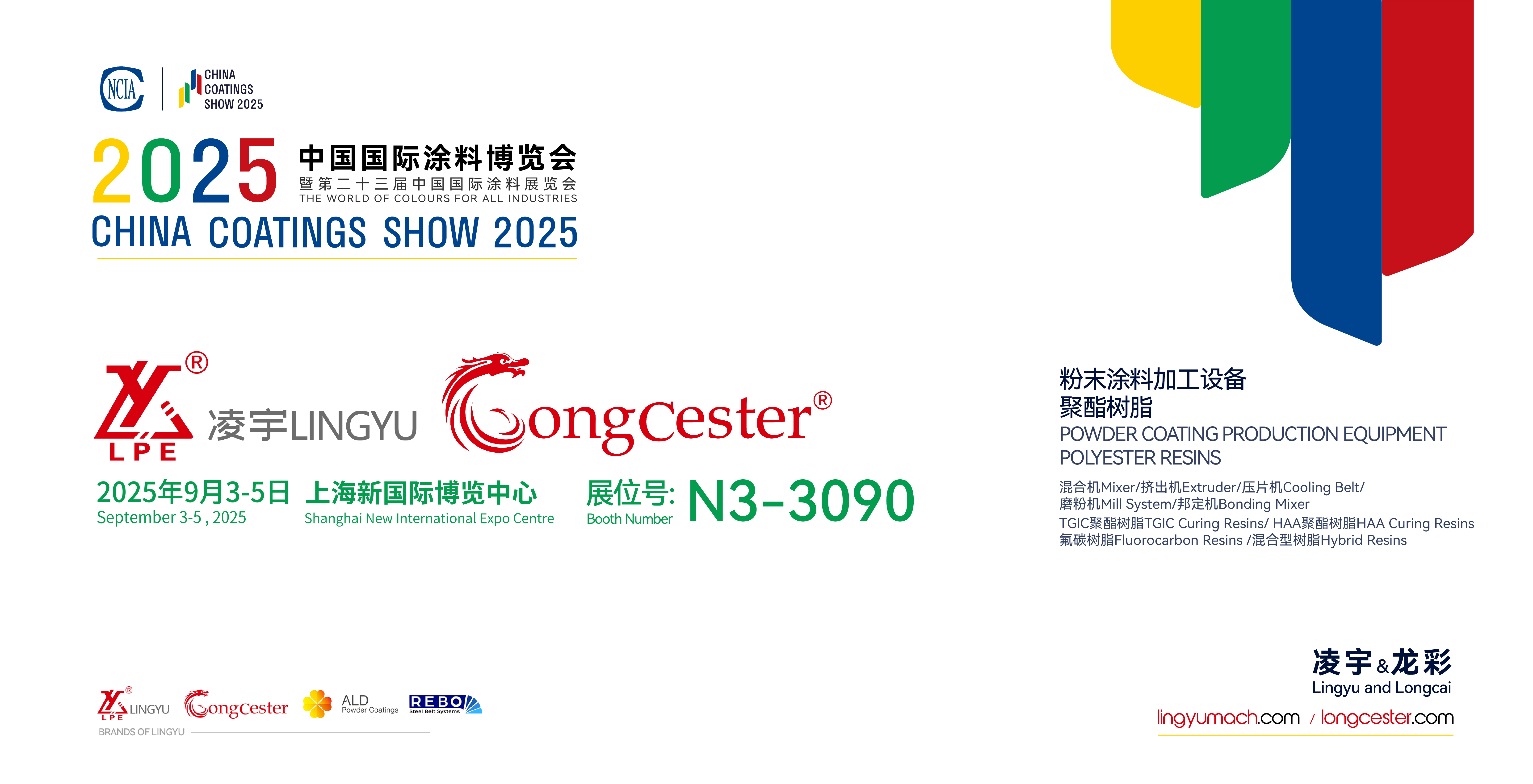 作為中國粉末涂料加工設備及原材料領域的代表性企業,凌宇機械與龍彩新材料將亮相本屆展會,展位號N3-3090