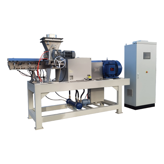 SLJ-M 系列雙螺桿擠出機該系列擠出機為雙螺桿同向旋轉結構。在安裝于雙螺桿上的螺旋塊和混煉塊相互精密嚙合作用下,將多組分原料充分熱融,達到好的分散及混煉效果。