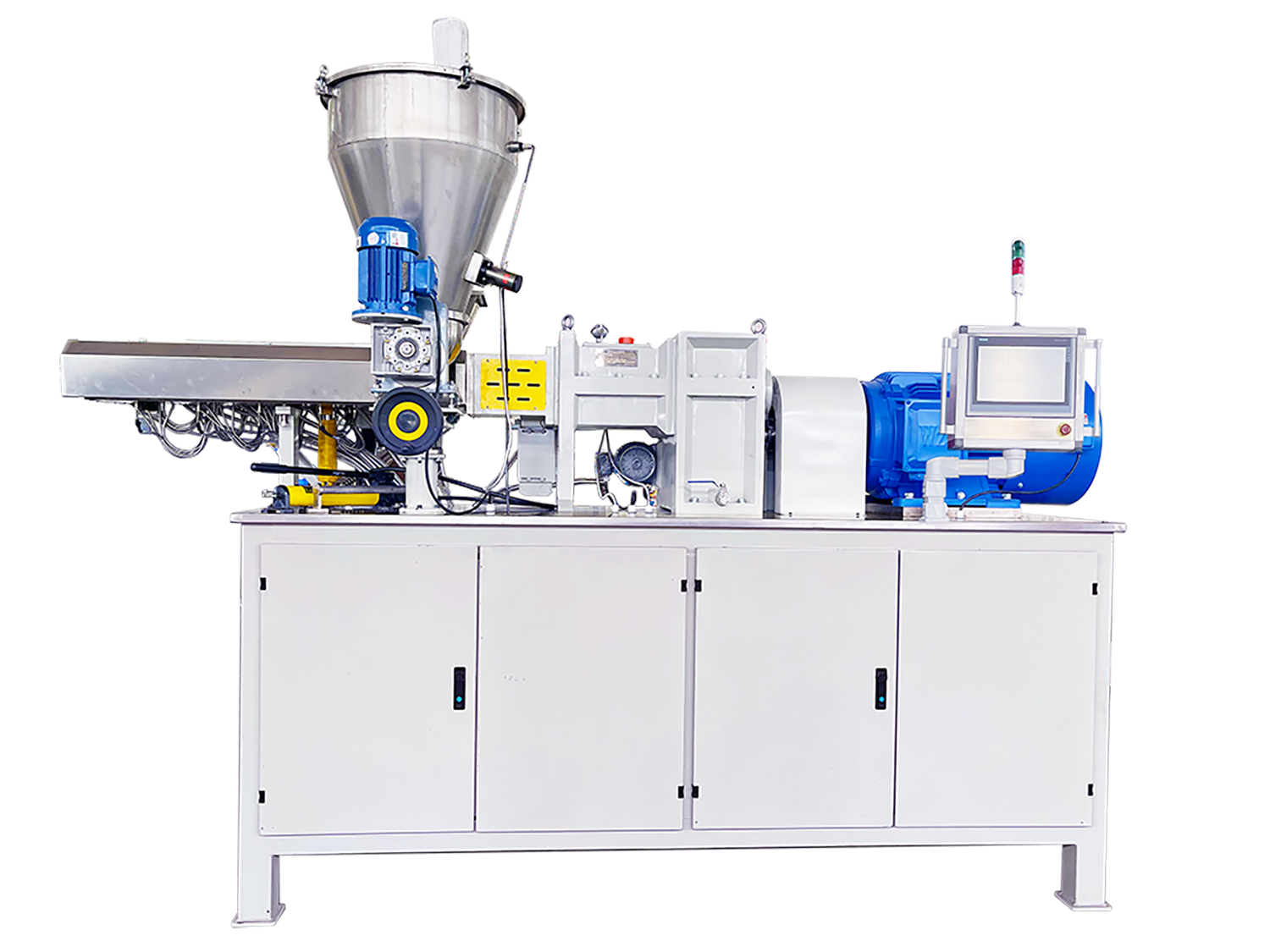 SLJ-H 系列雙螺桿擠出機SLJ-H 系列雙螺桿擠出機產量高,是擠出化學原料的設備。原料在高速旋轉精密嚙合塊的作用下,進行充分的分散和分布混合。雙螺桿擠出機是粉末涂料生產的關鍵設備。